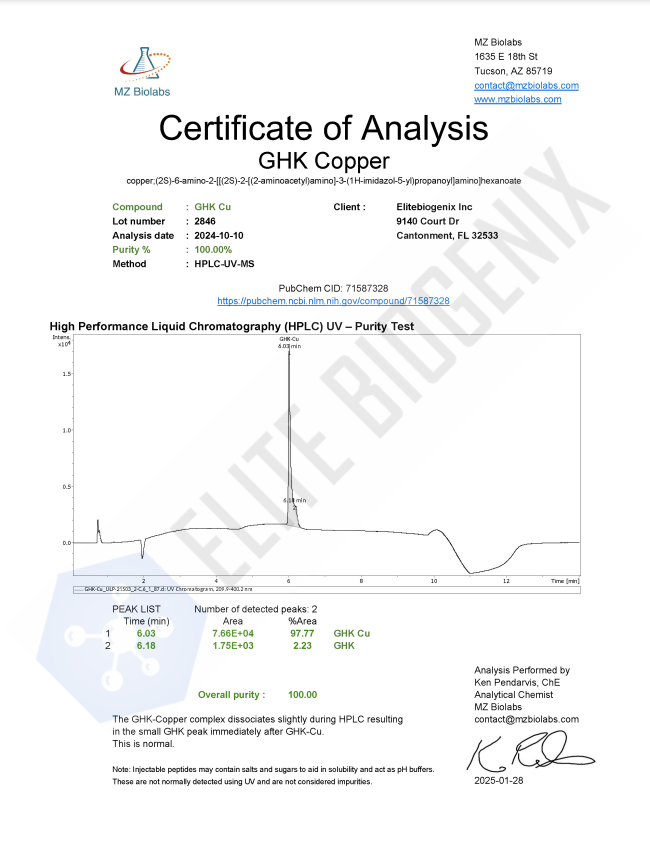 GHK-Cu is a naturally occurring copper peptide complex composed of glycyl-L-histidyl-L-lysine. This tripeptide has been extensively studied for its therapeutic potential and is naturally present in human blood, saliva, and urine. Known for its remarkable ability to promote wound healing and skin regeneration, GHK-Cu works by attracting fibroblasts and immune cells to damaged areas, accelerating tissue repair and recovery.