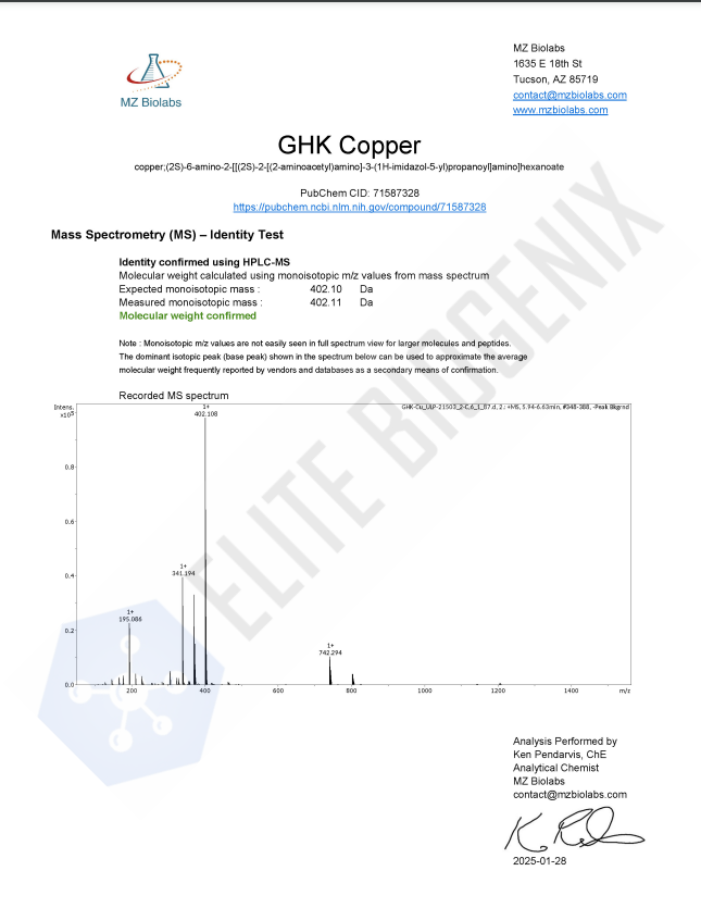 - Sequence: (GLY-HIS-LYS)-Cu-HAc