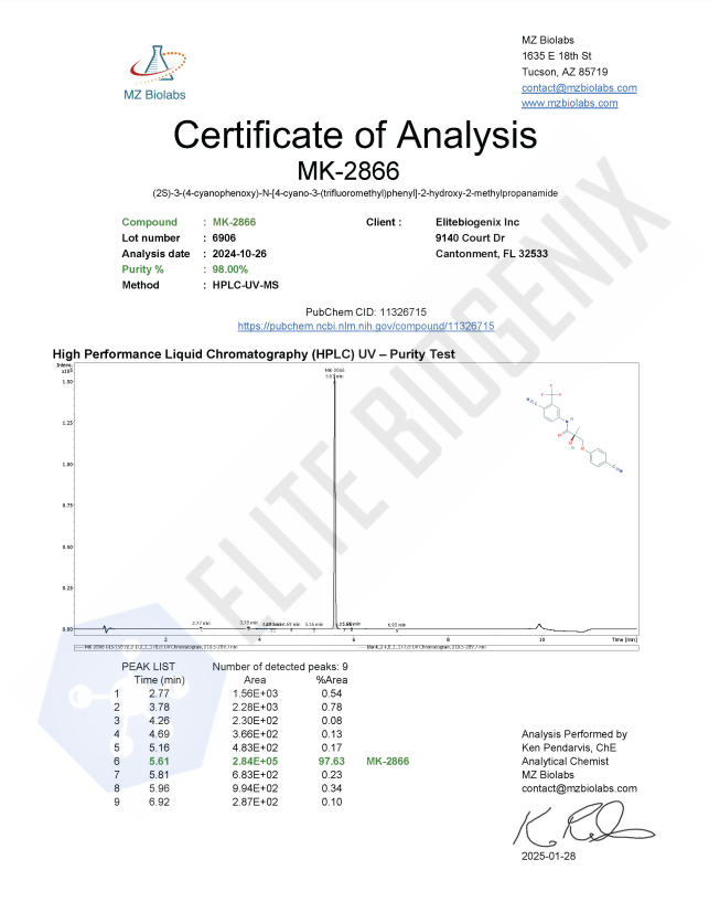 It’s crucial to emphasize that MK-2866 is not approved by the FDA for human consumption and is strictly intended for laboratory research purposes. It should not be confused with dietary supplements or sports performance enhancers.