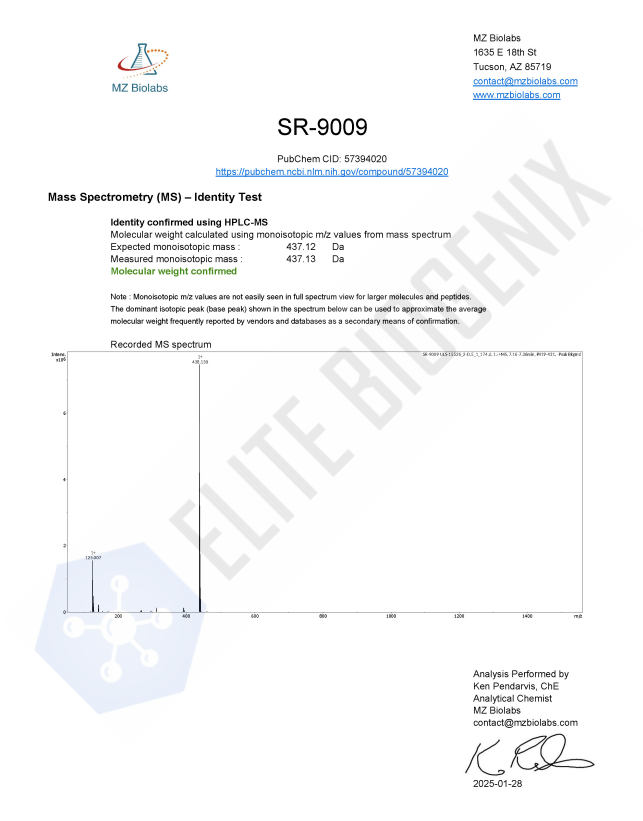 All EliteBiogenix products including SR9009 are strictly for research purposes in controlled laboratory settings. They are not for human or veterinary use, consumption, or cosmetic applications. By purchasing, you confirm you are a qualified researcher complying with all applicable regulations.