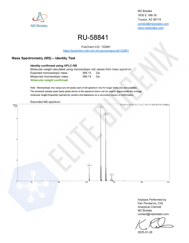 RU58841 is sold for laboratory research use only. Terms of sale apply. Not for human consumption, nor medical, veterinary, or household uses. Please familiarize yourself with our Terms & Conditions prior to ordering.